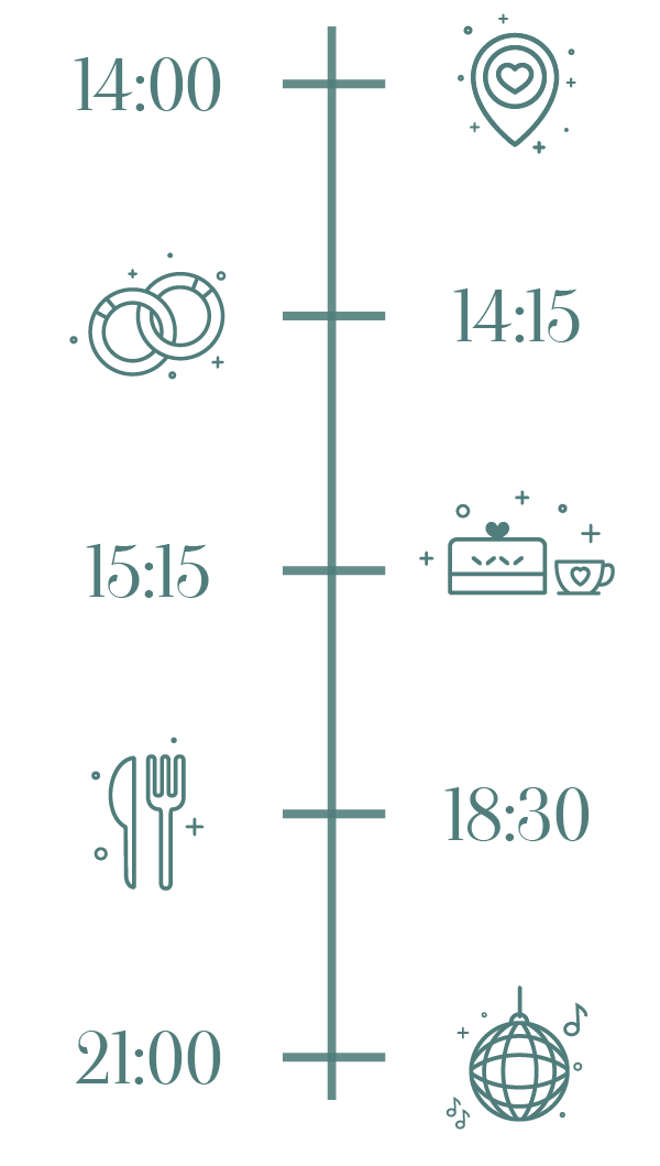 Die Anreise zur Location ist ab Freitagabend bereits möglich, falls ihr eine weitere Anreise habt oder das Wochenende mit uns gemütlich einleiten wollt. Ansonsten freuen wir uns, ab 14:00 Uhr am Samstag unsere Hochzeit einzuläuten.